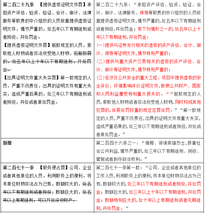 日前,第十三届全国人大常委会第二十次会议对《刑法修正案(十一)(草案)》进行审议。该草案已在中国人大网公布。“北大法宝”对最新的草案与现行刑法进行了梳理比较,将内容上的重要变动通过对照表的方式呈现,以便大家直观了解。现转载如下: